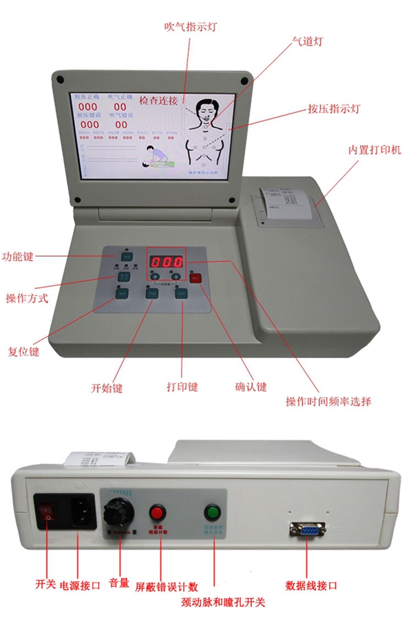 ■ 電子監(jiān)測(cè):電子指示燈顯示監(jiān)測(cè)氣道開放和按壓部位。人工呼吸和胸外按壓的正確次數(shù)計(jì)數(shù)和錯(cuò)誤次數(shù)計(jì)數(shù)。